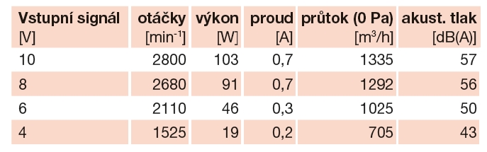 | Ø připojení [mm] | otáčky [min-1] | průtok (0 Pa) [m3/h] | výkon [W] | napětí [V] | proud [A] | akust. tlak [dB(A)] | hmotnost [kg] | regulátor |