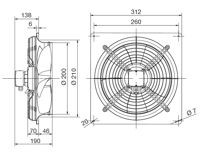 HXBR 200 Ecowatt IP44 economical axial fanAxiální ventilátory IP44