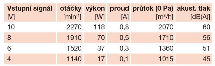 | Ø připojení [mm] | otáčky [min-1] | průtok (0 Pa) [m3/h] | výkon [W] | napětí [V] | proud [A] | akust. tlak [dB(A)] | hmotnost [kg] | regulátor |