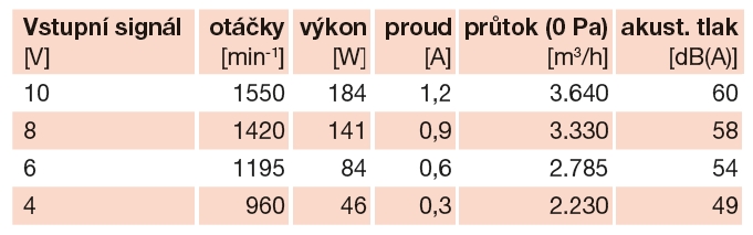 | Ø připojení [mm] | otáčky [min-1] | průtok (0 Pa) [m3/h] | výkon [W] | napětí [V] | proud [A] | akust. tlak [dB(A)] | hmotnost [kg] | regulátor |