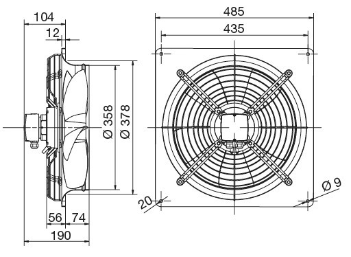HXBR 355 Ecowatt IP44 economical axial fanAxiální ventilátory IP44