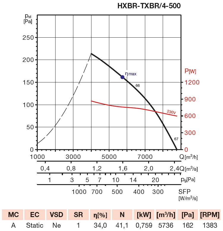 | Ø připojení [mm] | otáčky [min-1] | průtok (0 Pa) [m3/h] | výkon [W] | napětí [V] | proud [A] | max. teplota [°C] | akust. tlak [dB(A)] | hmotnost [kg] | regulátor |