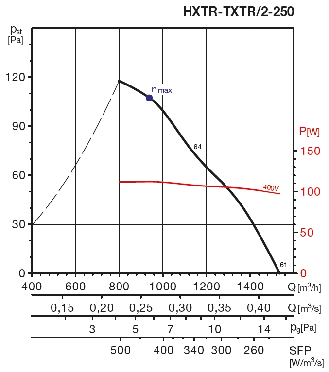![]() | Hluk Hluk emitovaný ventilátorem je uveden v tabulkách, měření je prováděno ve vzdálenosti rovné trojnásobku průměru oběžného kola (minimálně však 1,5 m) na straně sání. | |