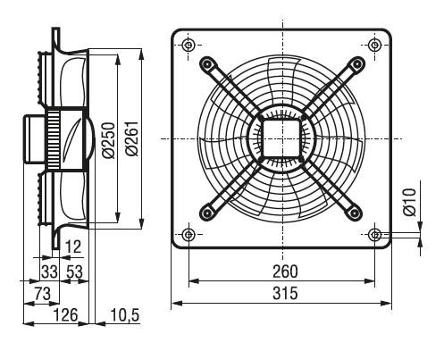 HXTR/2-250 IP44 axial fanAxiální ventilátory