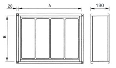 ![]() | Informace • filtrační kazeta pro čtyřhranné potrubí je standardně vybavena deskovým filtrem G4, filtr je součástí kazety • kazeta je vyrobena z galvanizované oceli, filtr se vyjímá dvířky, nutno pamatovat na volný prostor pro otevření dvířek a výměnu filtru • na skříni mohou být osazeny odběry pro diferenciální tlakový senzor, kterým lze indikovat zanesení filtru | |