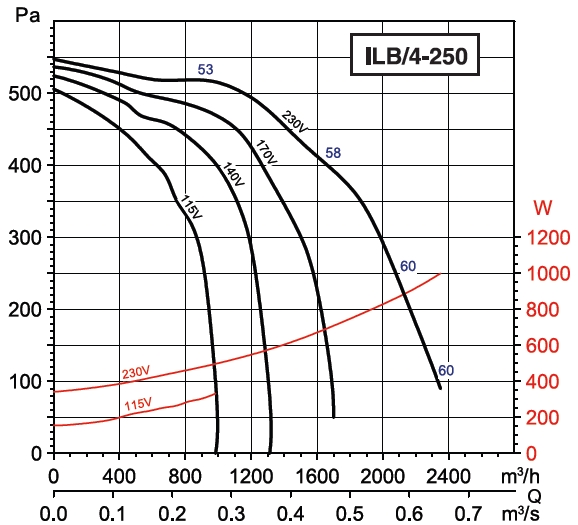 ILB/4-250 IP55 centrifugal fanRadiální ventilátory do čtyřhranného potrubí IP55