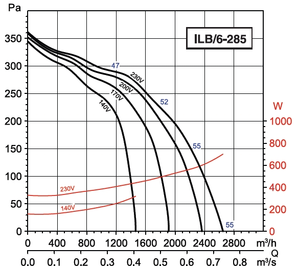 ILB/6-285 IP55 centrifugal fanRadiální ventilátory do čtyřhranného potrubí IP55