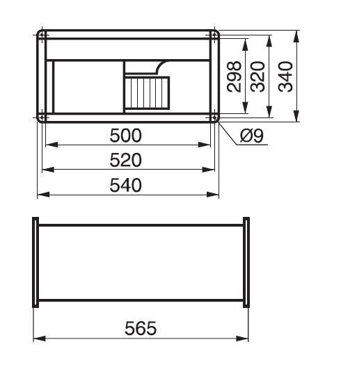 ![]() | Skříň ventilátoru je z ocelového, galvanicky pozinkovaného plechu, skříň je opatřena přírubami pro upevnění do čtyřhranného potrubí. Na skříni je revizní víko, po jehož demontáži je přístupné oběžné kolo. | |