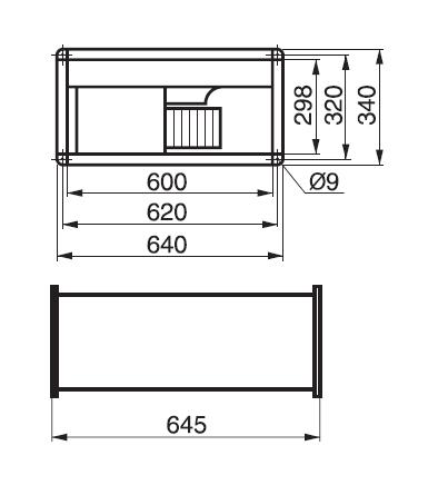 ![]() | Skříň ventilátoru je z ocelového, galvanicky pozinkovaného plechu, skříň je opatřena přírubami pro upevnění do čtyřhranného potrubí. Na skříni je revizní víko, po jehož demontáži je přístupné oběžné kolo. | |