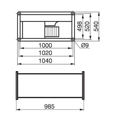 ![]() | Skříň ventilátoru je z ocelového, galvanicky pozinkovaného plechu, skříň je opatřena přírubami pro upevnění do čtyřhranného potrubí. Na skříni je revizní víko, po jehož demontáži je přístupné oběžné kolo. | |