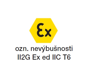 ![]() | Informace Vypínač INTZ ATEX je určen pro ventilátory jednofázové 230 V nebo třífázové 400 V do prostředí s nebezpečím výbuchu. • 3 uzamykatelné polohy (zapnutí, vypnutí a nouzové zastavení) • krytí IP66 • teplota okolního prostředí -20o až +40 oC | |