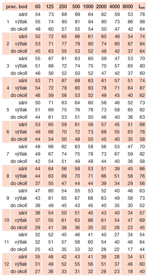 * akustický tlak ve vzdálenosti 1,5 m; sání/výtlak/do okolí