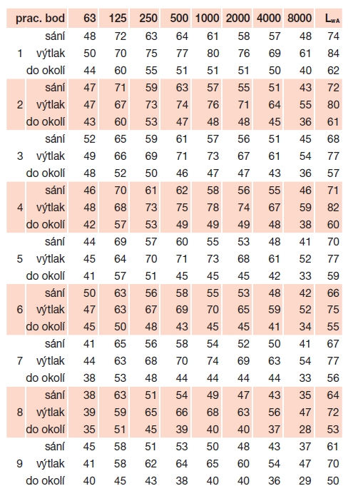 * akustický tlak ve vzdálenosti 1,5 m; sání/výtlak/do okolí