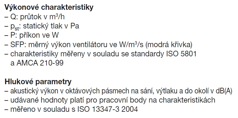 | rozměry potrubí [mm] | otáčky [min-1] | průtok (0 Pa) [m3/h] | výkon [W] | napětí [V] | proud [A] | max. teplota [˚C] | akust. tlak* [dB(A)] | hmotnost [kg] | regulátor |