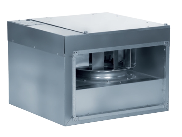![]() | Skříň Skříň ventilátoru je z ocelového galvanicky pozinkovaného plechu, sendvičového provedení. Skříň je opatřena vrstvou zvukově izolujícího materiálu tloušťky 50 mm. Motor s oběžným kolem je upevněn na servisních dvířkách umožňujících snadné čištění a údržbu. Skříň je opatřena přírubami pro upevnění na čtyřhranné potrubí. | |