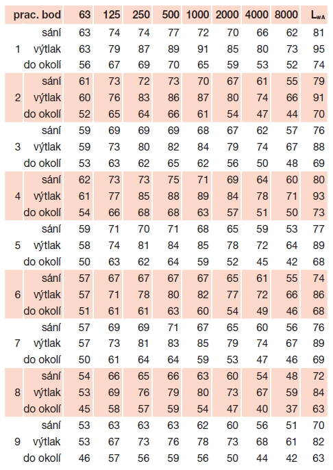 * akustický tlak ve vzdálenosti 1,5 m; sání/výtlak/do okolí