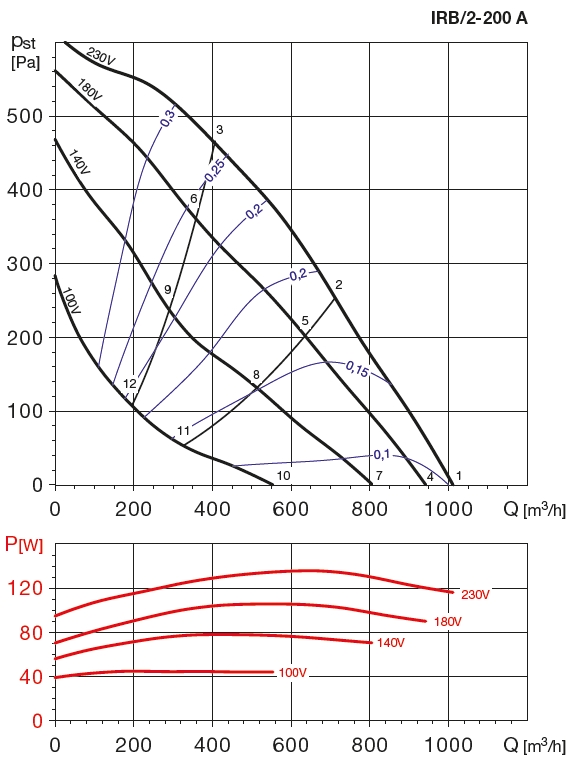 IRB/2-200 A IP44 centrifugal fanRadiální ventilátory do čtyřhranného potrubí