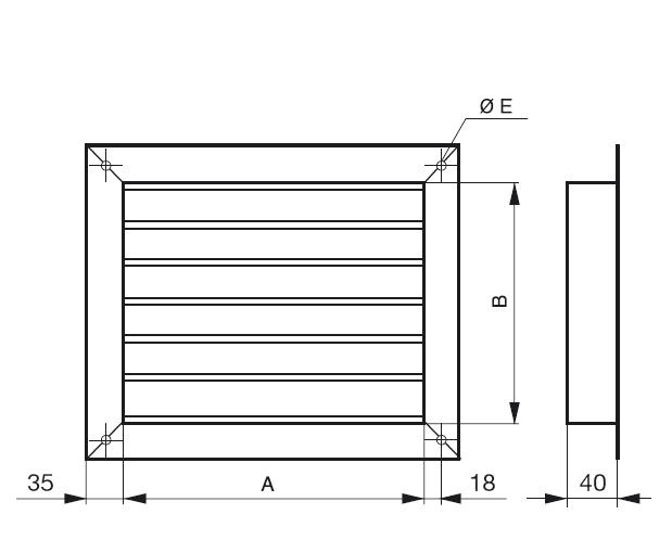 ![]() | Informace • rám z pozinkovaného plechu • samotížné lamely z Fe plechu • barva přírodní • lamely otočné na ose • pozední rám na zakázku • dodávka velikostí 25 a 30 po dohodě s technickým oddělením • otvory E nejsou standardně vyvrtány, dle nákresu možno vyvrtat před montáží | |