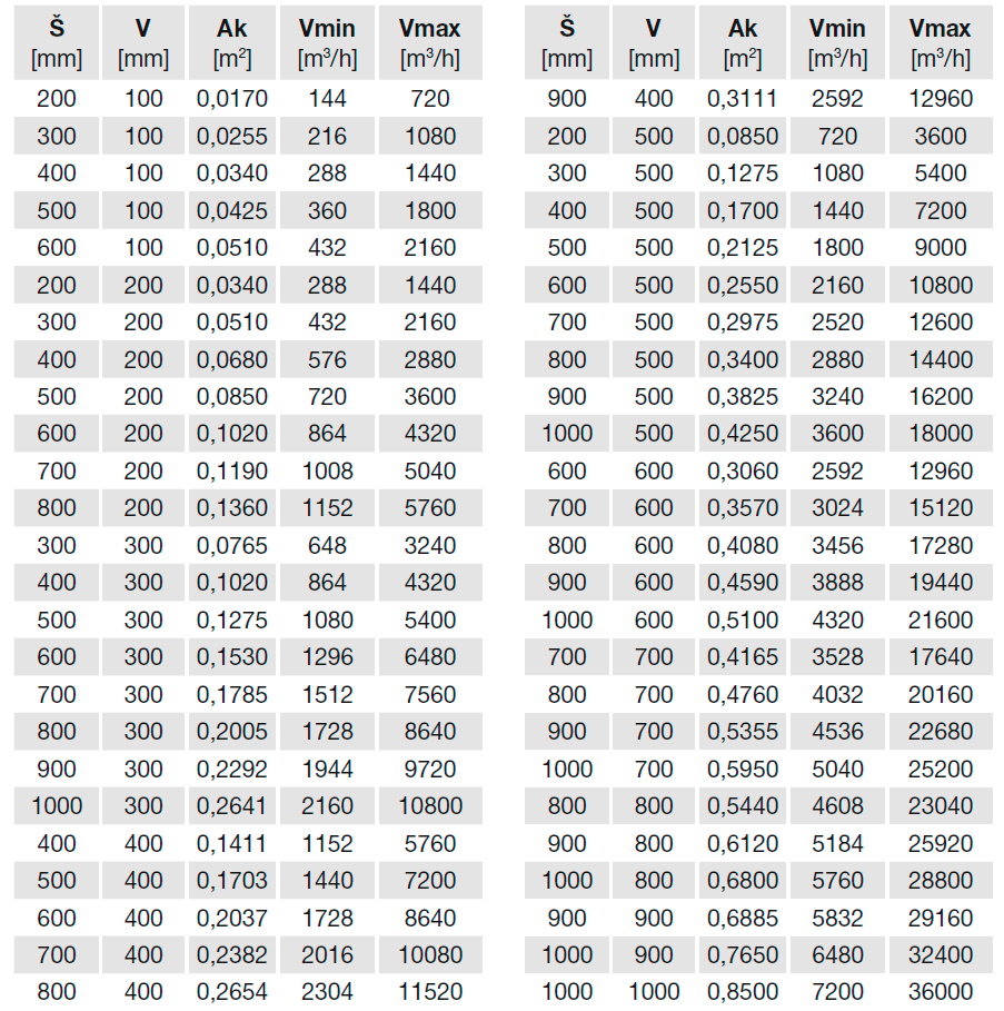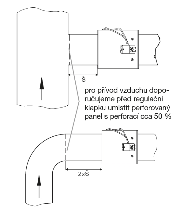 pro přívod vzduchu doporučujeme před regulační klapku umístit perforovaný panel s perforací cca 50 % |
