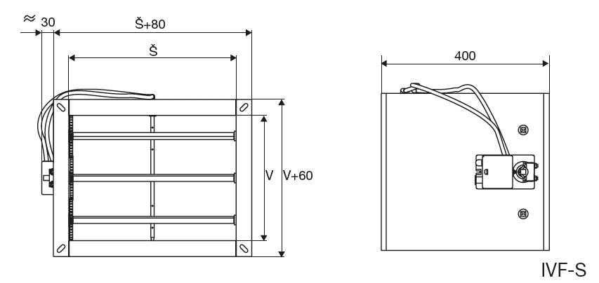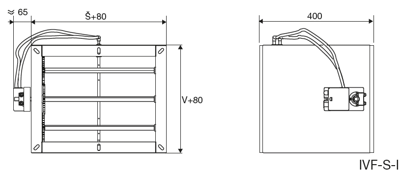 ![]() | Informace Regulační klapka pro čtyřhranné potrubí s vestavěnou regulací IVF-S se skládá z těsné klapky, servopohonu a měřícího zařízení. Vstupní data jsou porovnána s referenčním signálem a následně je servopohonem upraveno nastavení klapky. • pro regulaci přívodu i odvodu vzduchu ve ventilačních systémech • možnost ovládání pomocí čidel teploty, kvality vzduchu, tlaku ap. • IVF-S-I – provedení s externí izolací • standardní provedení analogový vstup 0–10 V | |