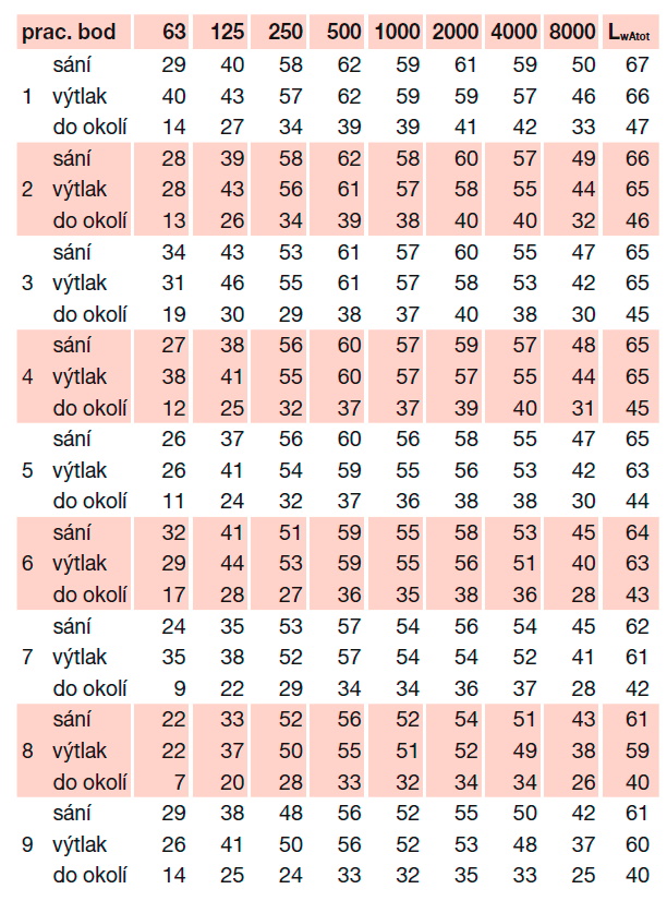 * akustický tlak je měřen ve volném poli ve vzdálenosti 1,5 m v bodě 2, sání / do okolí / výtlak