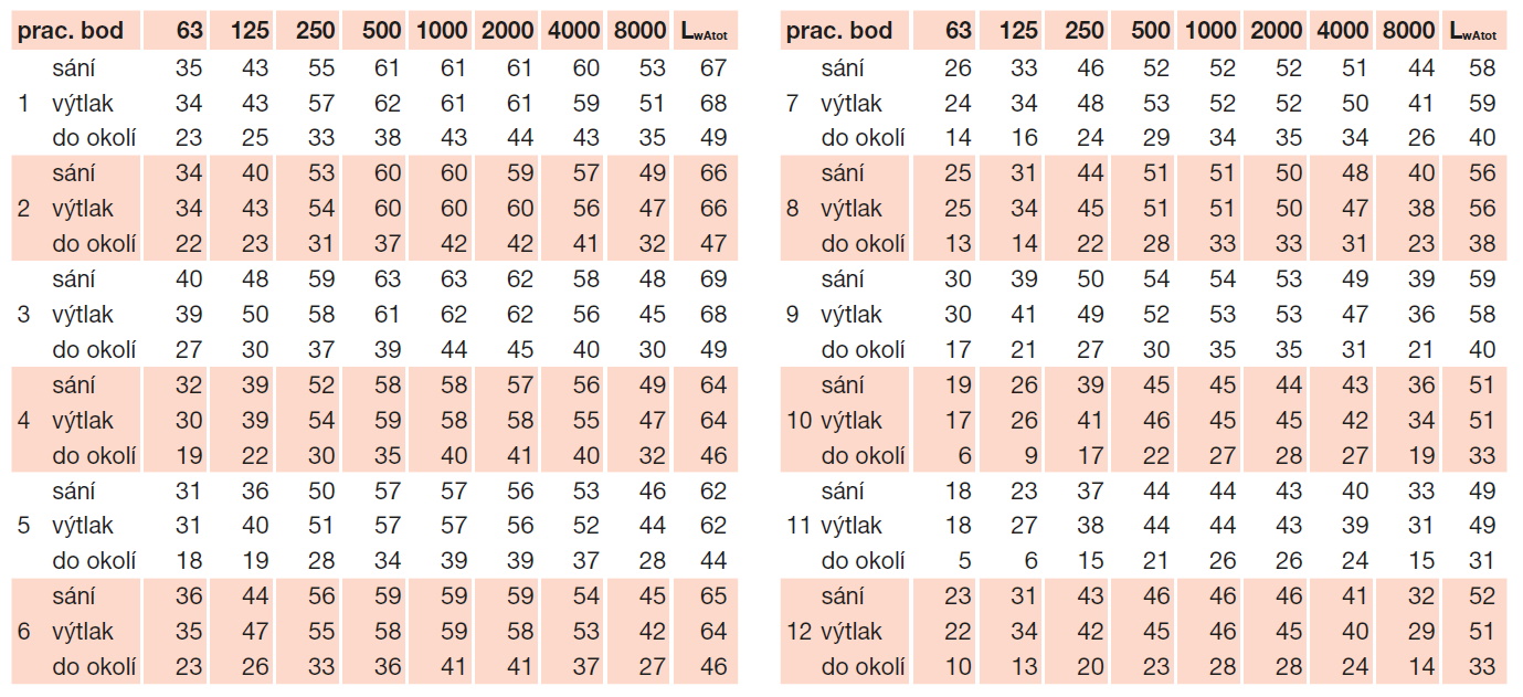 * akustický tlak je měřen ve volném poli ve vzdálenosti 1,5 m v bodech 2, 5, 8 a 11; sání / do okolí / výtlak