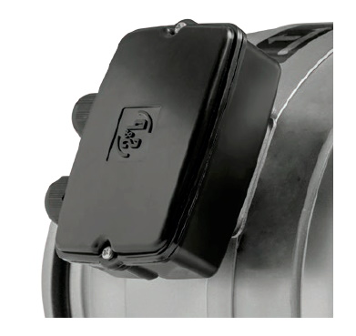 ![]() | Regulace otáček Regulace otáček se provádí pomocí potenciometru umístěného ve svorkovnici nebo externím ovládáním REB-Ecowatt. Dále analogovým vstupem 0–10 V od čidla teploty, vlhkosti nebo CO2. | |