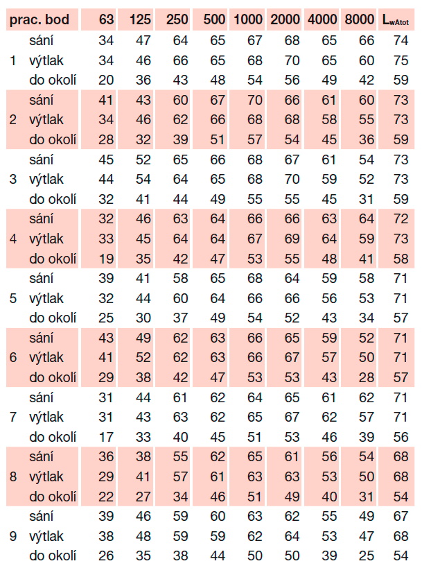 * akustický tlak je měřen ve volném poli ve vzdálenosti 1,5 m v bodě 2, sání / do okolí / výtlak