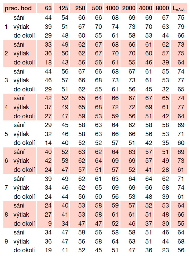 * akustický tlak je měřen ve volném poli ve vzdálenosti 1,5 m v bodě 2, sání / do okolí / výtlak