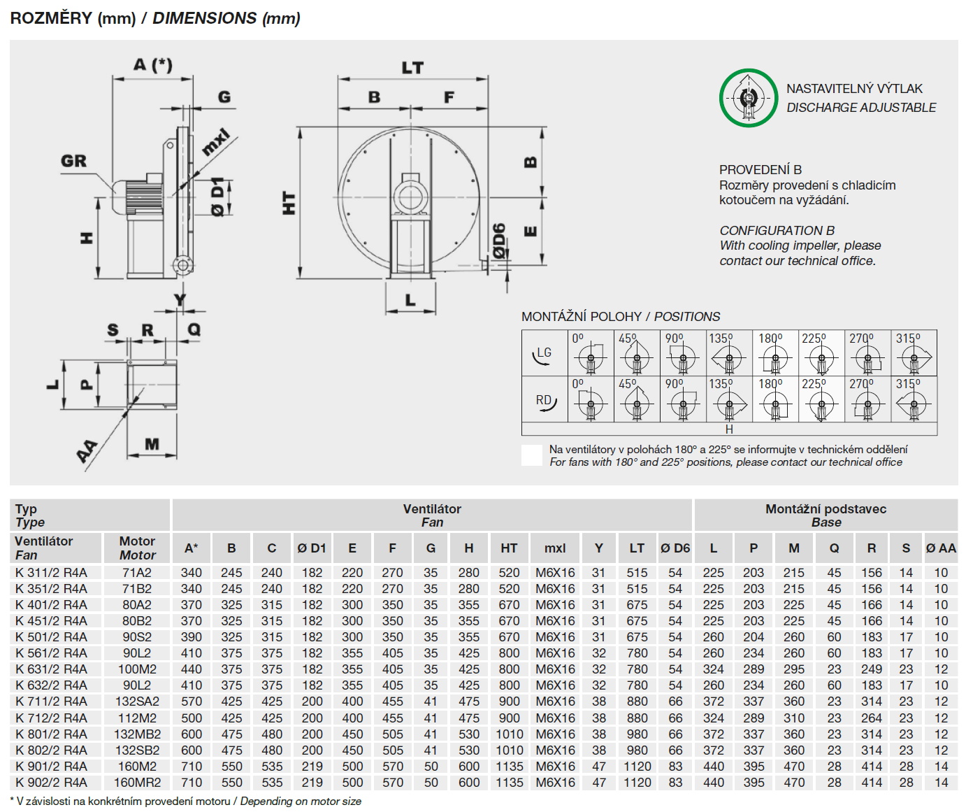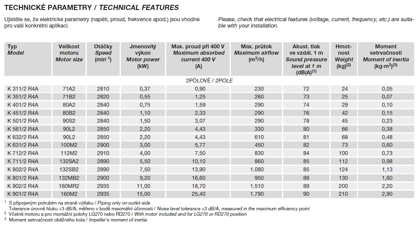 technické parametry | radiální oběžné kolo | tabulka použití | izolátory chvění | |||