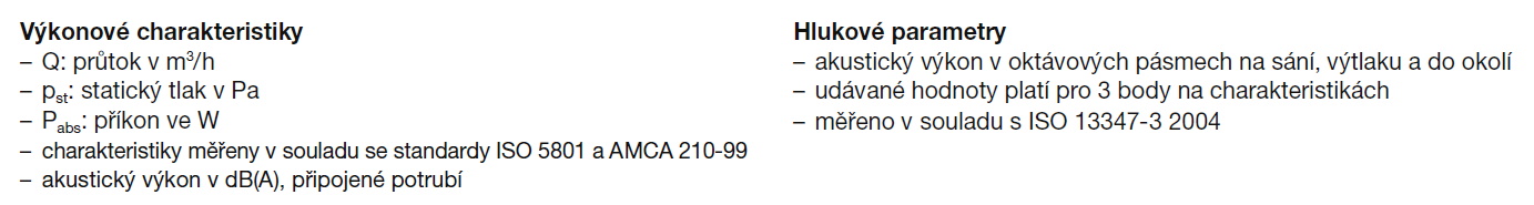 ![]() | Hluk Hluk emitovaný ventilátorem je uveden v tabulkách pro 3 části výkonové křivky (volný výtlak, střední a vysoká tlaková ztráta). | |