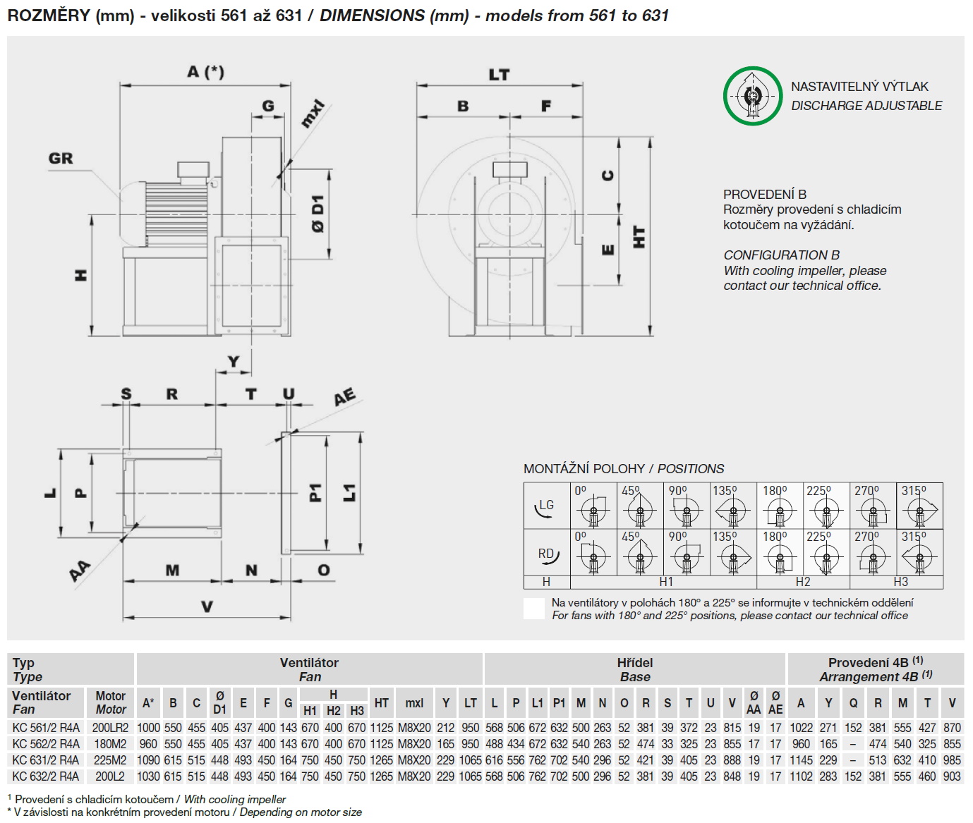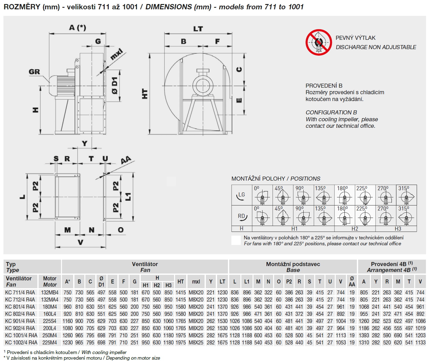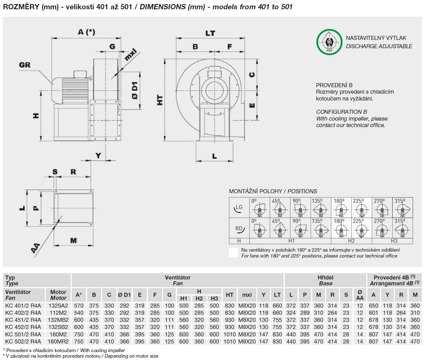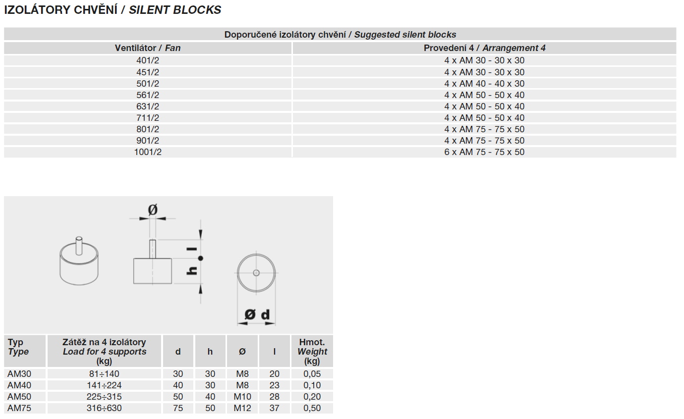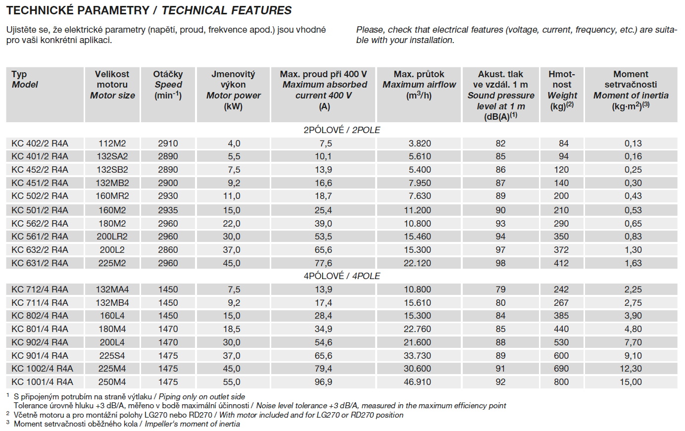 technické parametry | radiální oběžné kolo | tabulka použití | izolátory chvění | |||