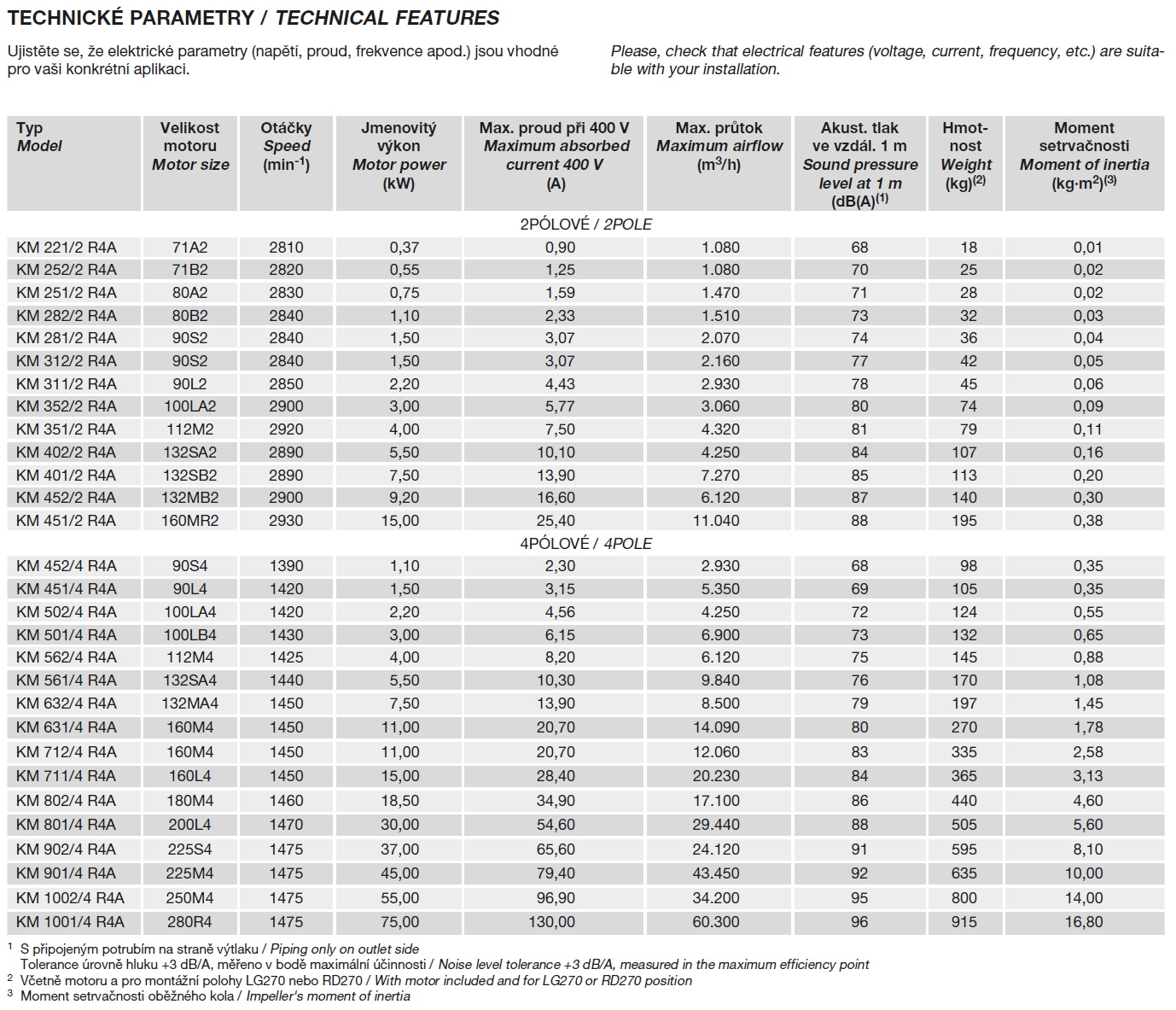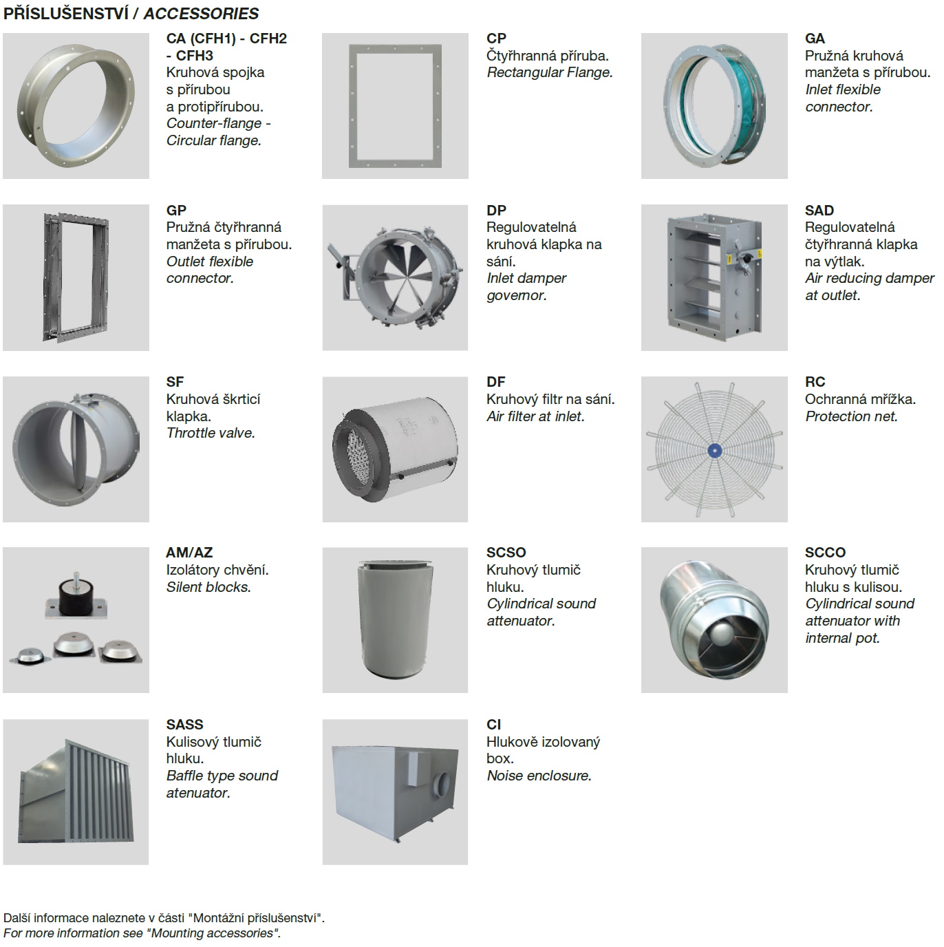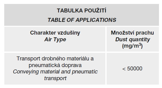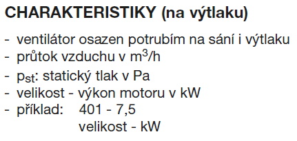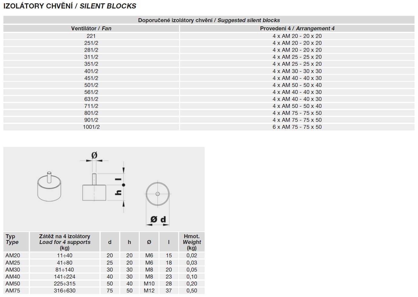 technické parametry | Oběžné kolo s dopředu zahnutými lopatkami pro transport materiálu | tabulka použití | izolátory chvění | |||