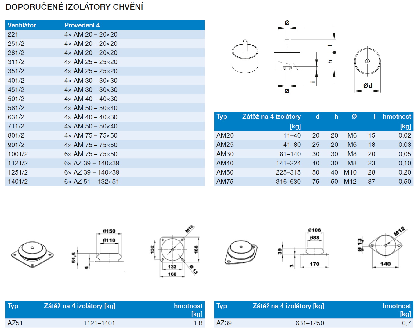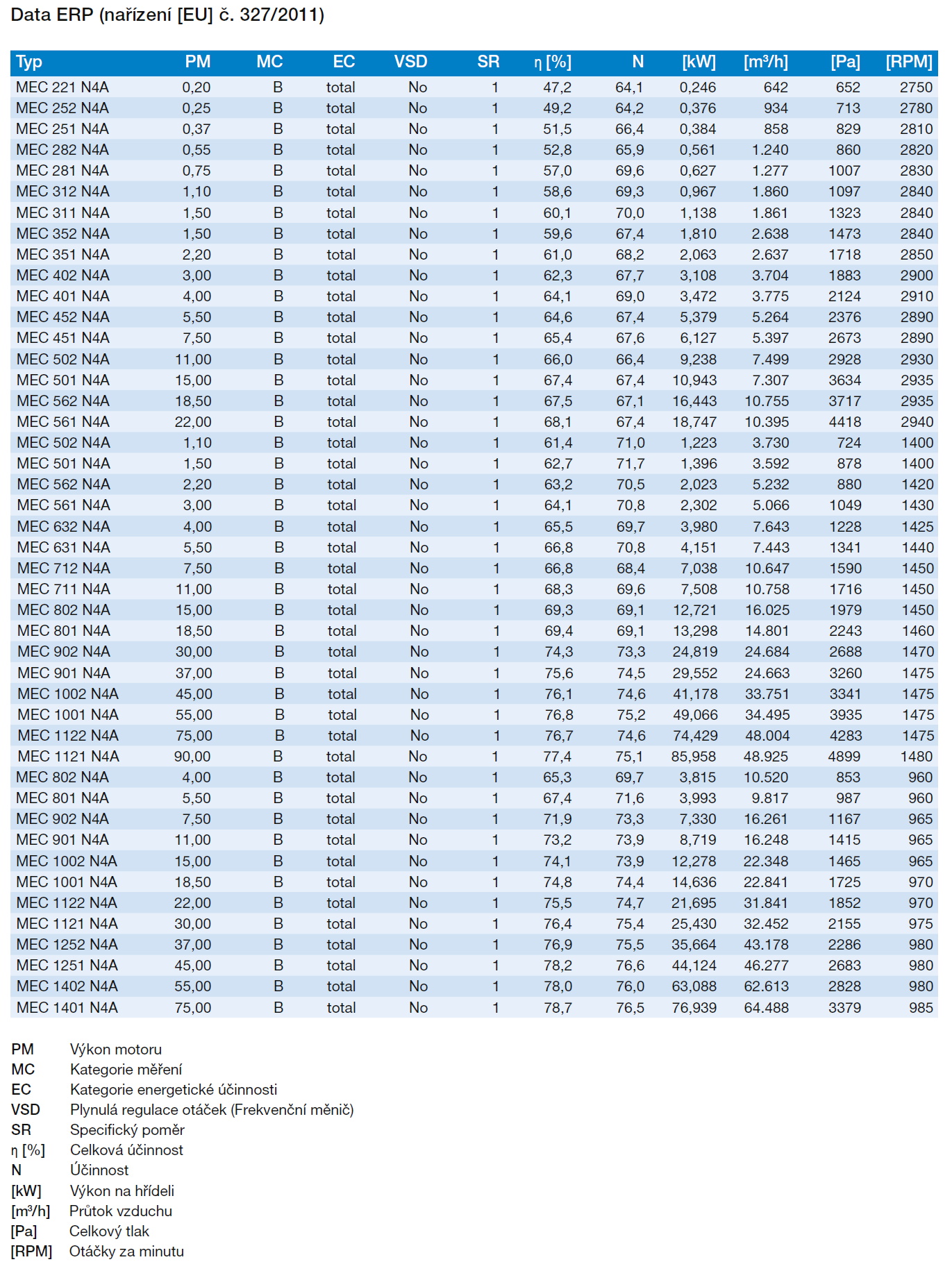 oběžné kolo s dozadu zahnutými lopatkami | tabulka použití | ERP data | izolátory chvění | |||