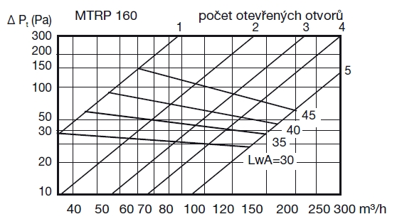 | Počet otevřených otvorů | 63 Hz | 125 Hz | 250 Hz | 500 Hz | 1 kHz | 2 kHz | 4 kHz | 8 kHz |