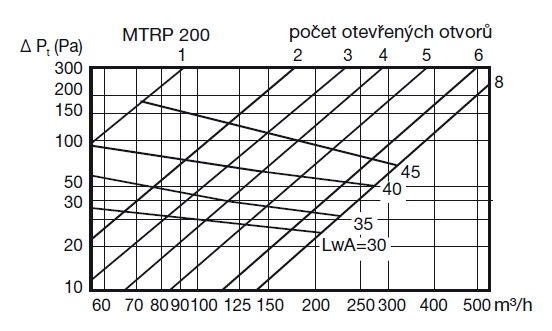 | Počet otevřených otvorů | 63 Hz | 125 Hz | 250 Hz | 500 Hz | 1 kHz | 2 kHz | 4 kHz | 8 kHz |