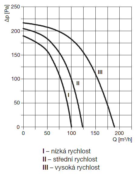 * akustický tlak měřený ve vzdálenosti 1,5 m ve volném poli; ** tři rychlosti + doběh