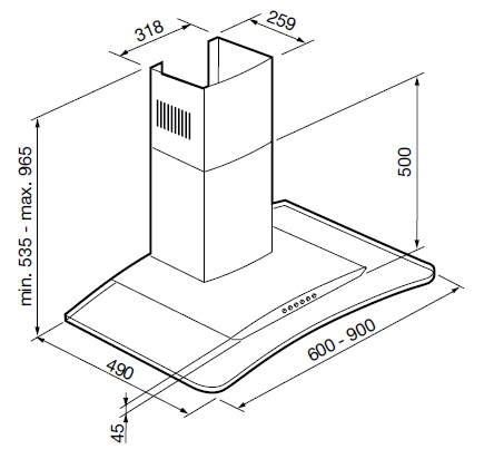 ![]() | Informace • volba tří rychlostí ventilátoru • osvětlení: LED 2× 2,5 W • profesionální kovový tukový filtr • zpětná klapka na výtlaku • horní vývod pro napojení • recirkulace vzduchu přes 2 uhlíkové filtry (příslušenství) • provedení: nerez nebo sklo • teleskopický komín • redukce pro výtlačné potrubí DN 150/120 • dostupné velikosti (šířka v mm): 600 a 900 | |