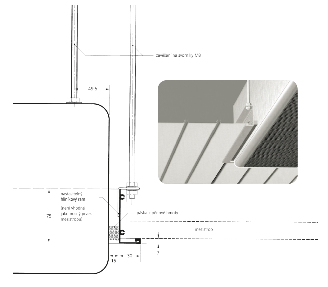 | hloubka rámu [mm] | šířka rámu [mm] | stropní výřez [mm] | počet bodů závěsu [mm] |