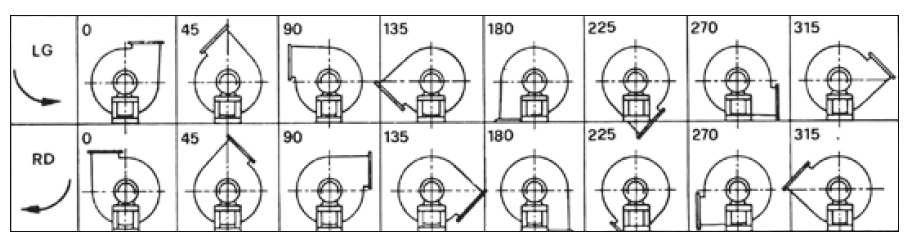 konzultace a návrh | možnosti natočení skříně (ventilátory zobrazeny z pohledu na motor) |