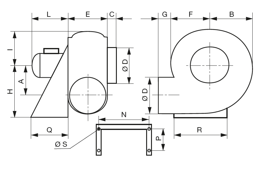 ![]() | Montáž Montáž se provádí na lakovanou stoličku motoru, která je součástí dodávky ventilátoru. Nerezová stolička na dotaz. | |