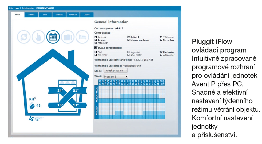 dotykové ovládání na přední straně jednotky | levé / pravé provedení | Pluggit iFlow - software pro ovládání jednotek přes PC | konzultace | |||