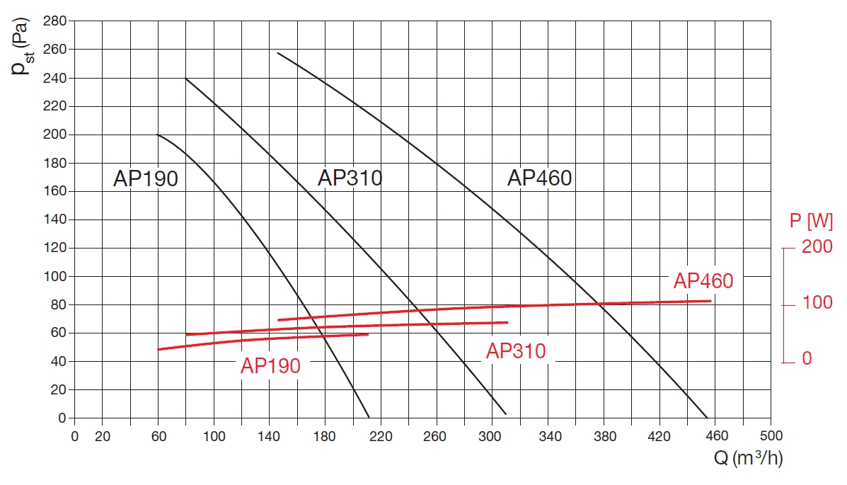 | max. průtok [m3/h] | příkon* [W] | napětí [V] | proud [A] | akustický tlak [dB(A)] | okolní teplota [˚C] | hmotnost [kg] |