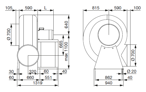 ![]() | Skříň Spirální skříň radiálního ventilátoru v levém nebo pravém provedení je standardně vyrobena litím z PE nebo PEel (na vyžádání PP, PPel nebo PVC). Na spoje jsou použity nerezové šrouby. Skříně se dodávají ve dvou provedeních. S kruhovým výfukem u velikostí 45, 50, 56, 63 a 80 nebo čtyřhranným výfukem u velikostí 45 až 110, viz rozměrové schéma. Teplota vzdušiny -15 ˚C až +70 ˚C, teplota okolí do +40 ˚C. | |