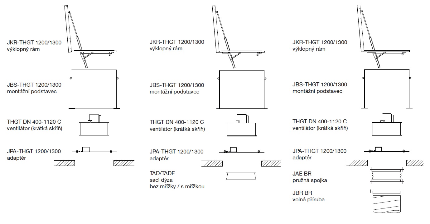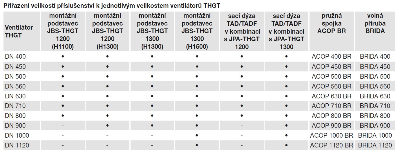 typový klíč pro objednávání | konzultace a návrh | přiřazení velikostí příslušenství k jednotlivým velikostem ventilátorů THGT | doporučené sestavy |