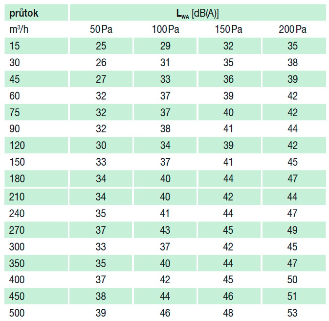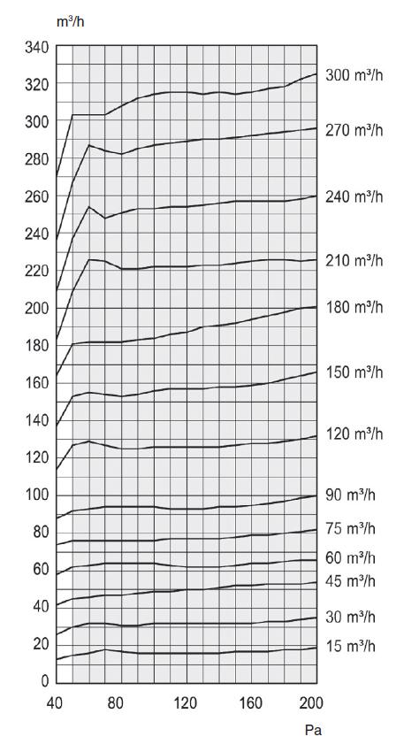 * konstantní průtok vzduchu při tlaku na regulátoru 50–200 Pa