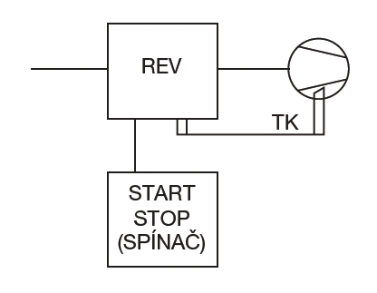 Regulátor otáček se silovým 5ti stupňovým přepínačem – ovládá se přepínačem na skříni; START STOP dálkově volitelným spínačem.