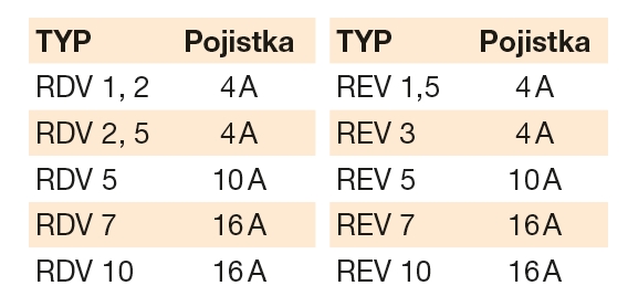 • napájecí napětí: 230 V (REV), 400 V (RDV)
