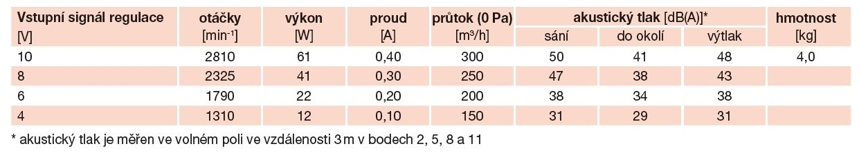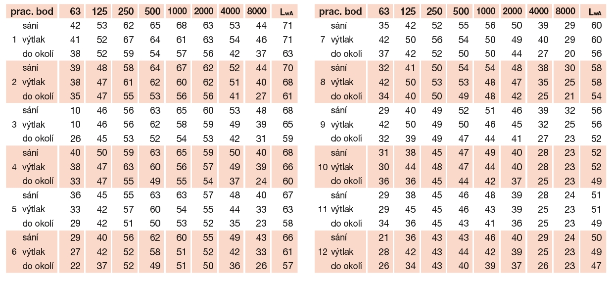 * akustický tlak je měřen ve volném poli ve vzdálenosti 3 m v pracovním bodě 2 výkonové charakteristiky (sání/do okolí/výtlak)