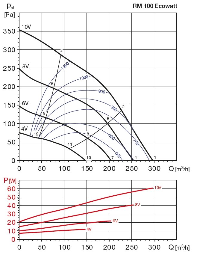 RM 100 Ecowatt IP44 economical fanDiagonální ventilátory do kruhového potrubí